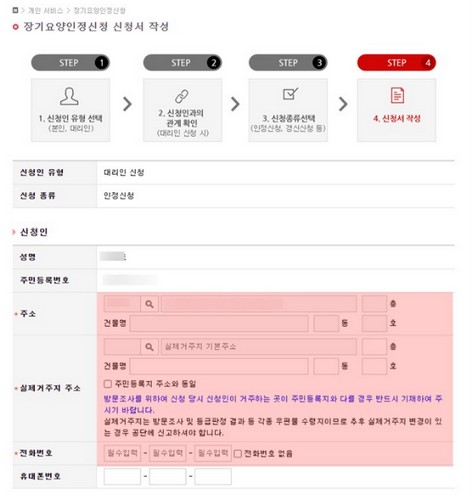 1. 실제거주지 주소를 확인해 주시길 바랍니다. 심사를 위해 공단직원이 방문 하는데 주소가 다르면 업무가 늦어져 등급 판정도 늦어질 수 있습니다.